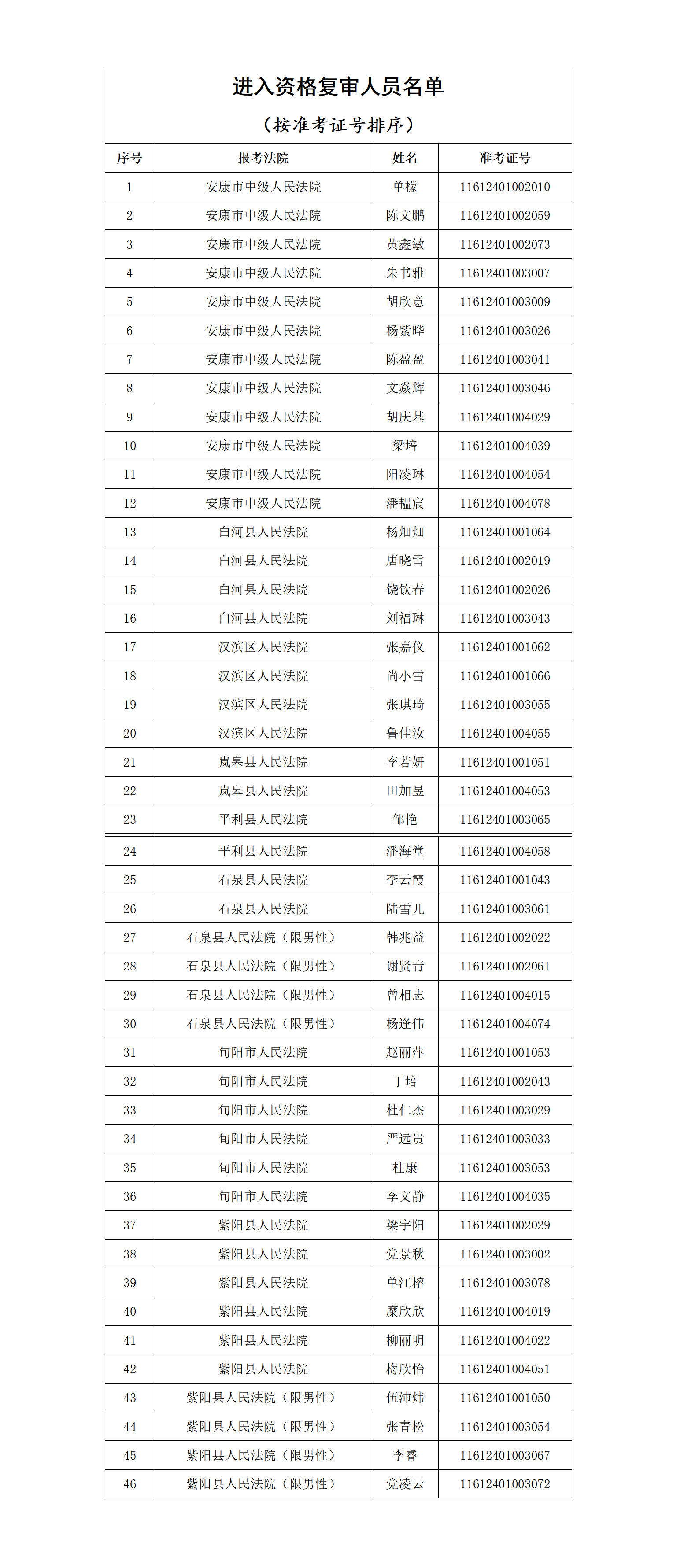 資格復(fù)審工作結(jié)束3日內(nèi),進(jìn)入面試人員名單在安康市中級人民法院及陜西秦潤人力資源集團有限公司官網(wǎng)和微信公眾號上進(jìn)行公布。